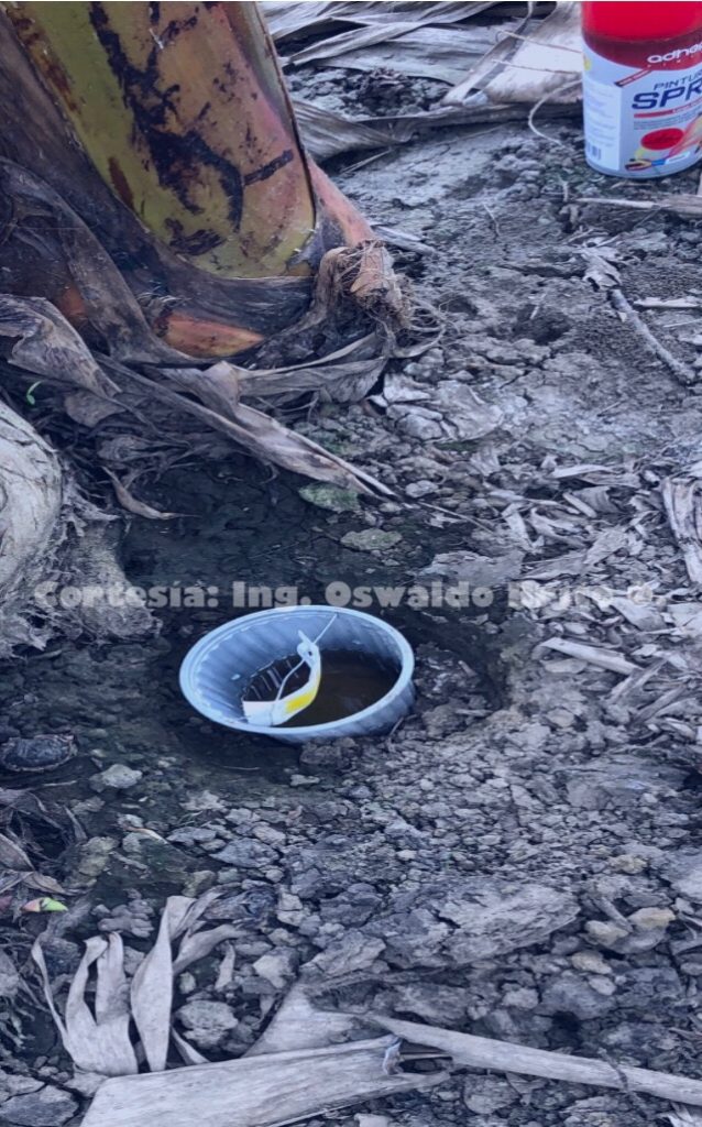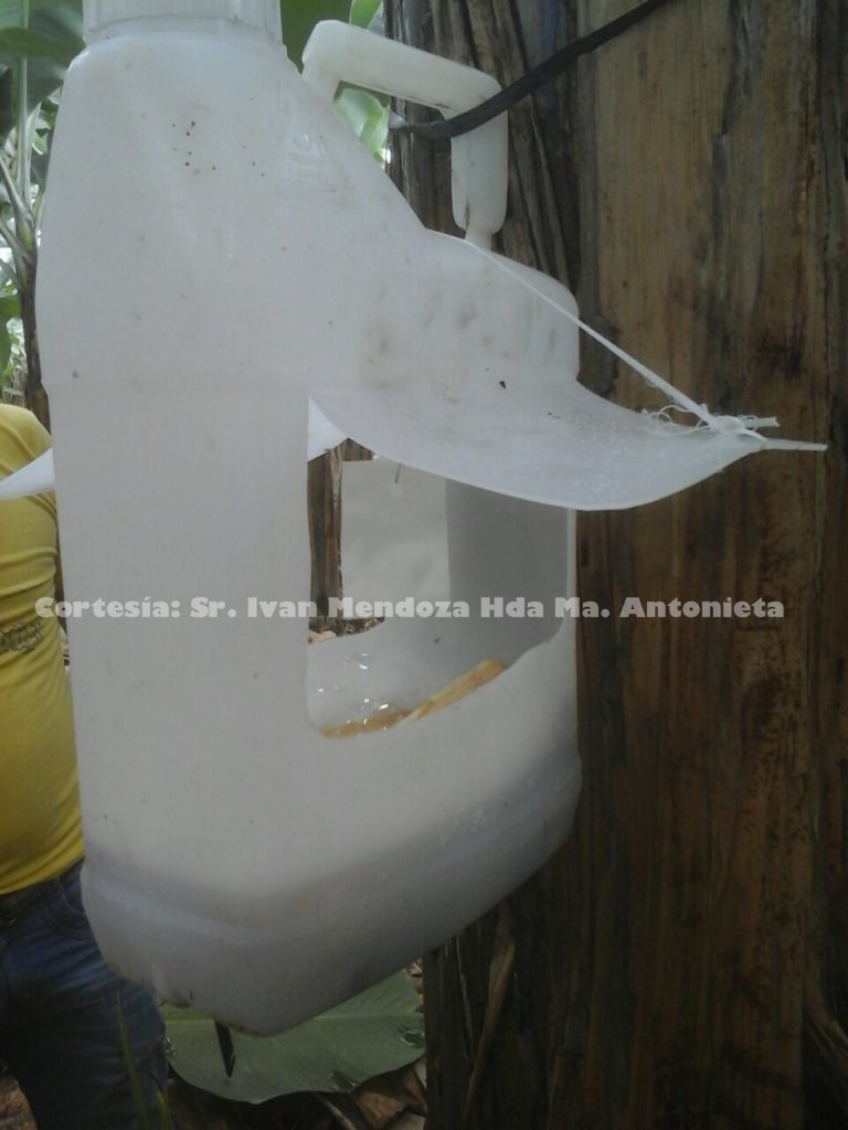 La literatura centroamericana, fue adaptada a nuestro medio ecuatoriano. Así modificamos las trampas molde a tarrinas artesanales, en donde se coloca la respectiva feromona Cosmolure+1.