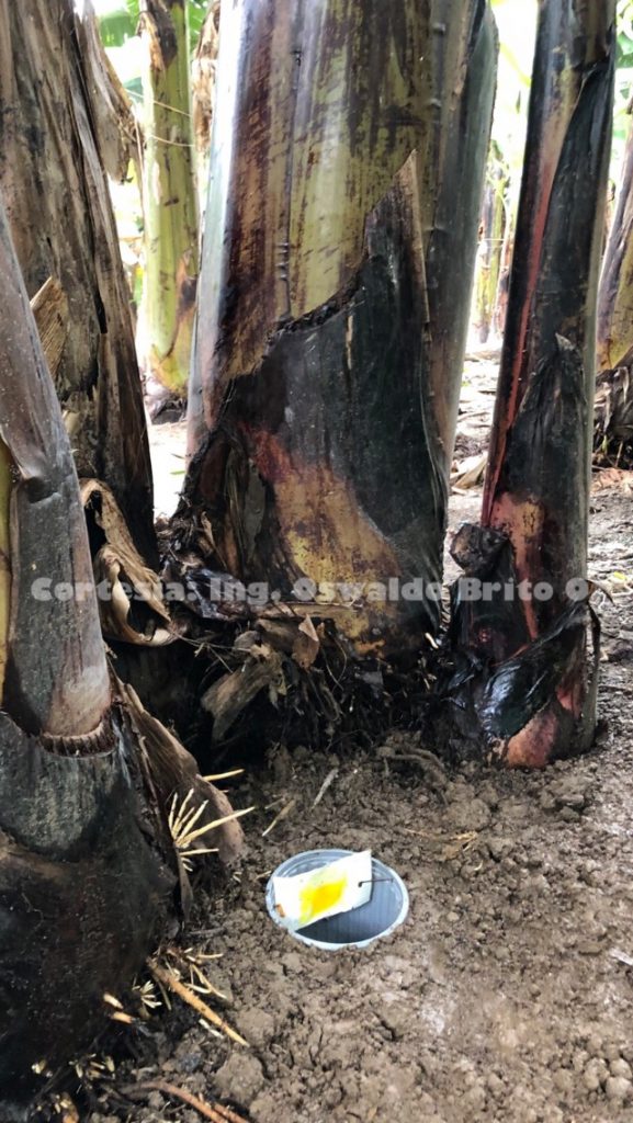 Esto ha generado un descontrol de la plaga a tal punto que desde el año 2014 estamos constatando en la provincia de Los Ríos ingresos de adulto de R. palmarum a las plantaciones comerciales de banano en la Provincia de Los Ríos y a ciertos meristemos israelitas de plátano sembrados en la Provincia de Santa Elena.